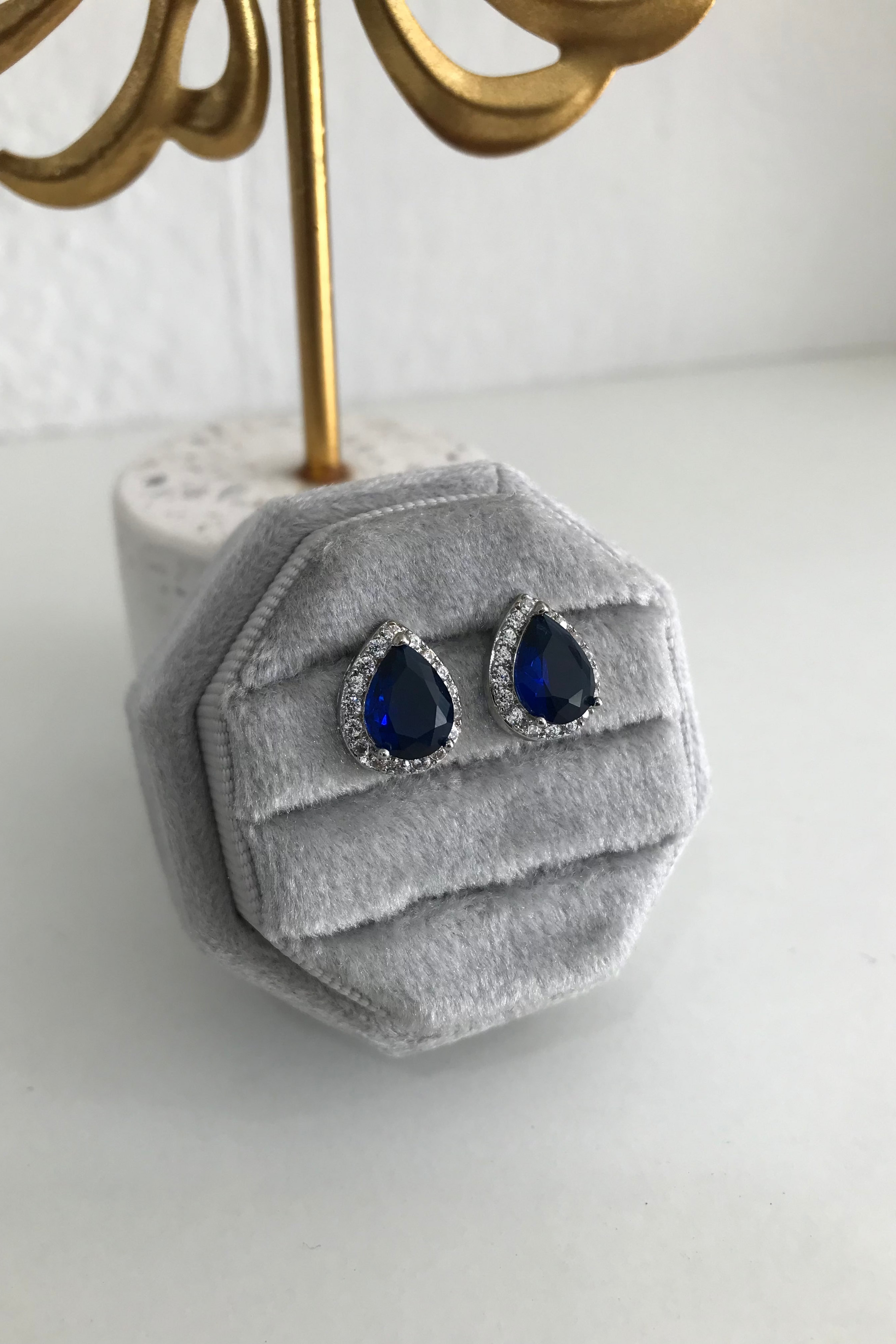 Estos aretes Clarissa en forma de gota azul son el complemento perfecto para tu look, especialmente si buscas ese toque del "something blue". Pequeños y delicados, ofrecen un estilo elegante que realza tu belleza con sutileza y distinción.