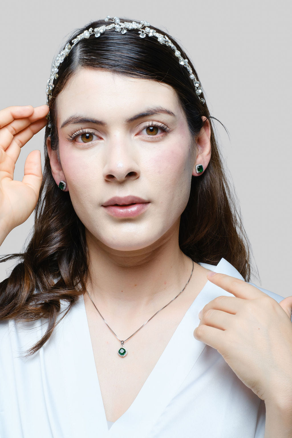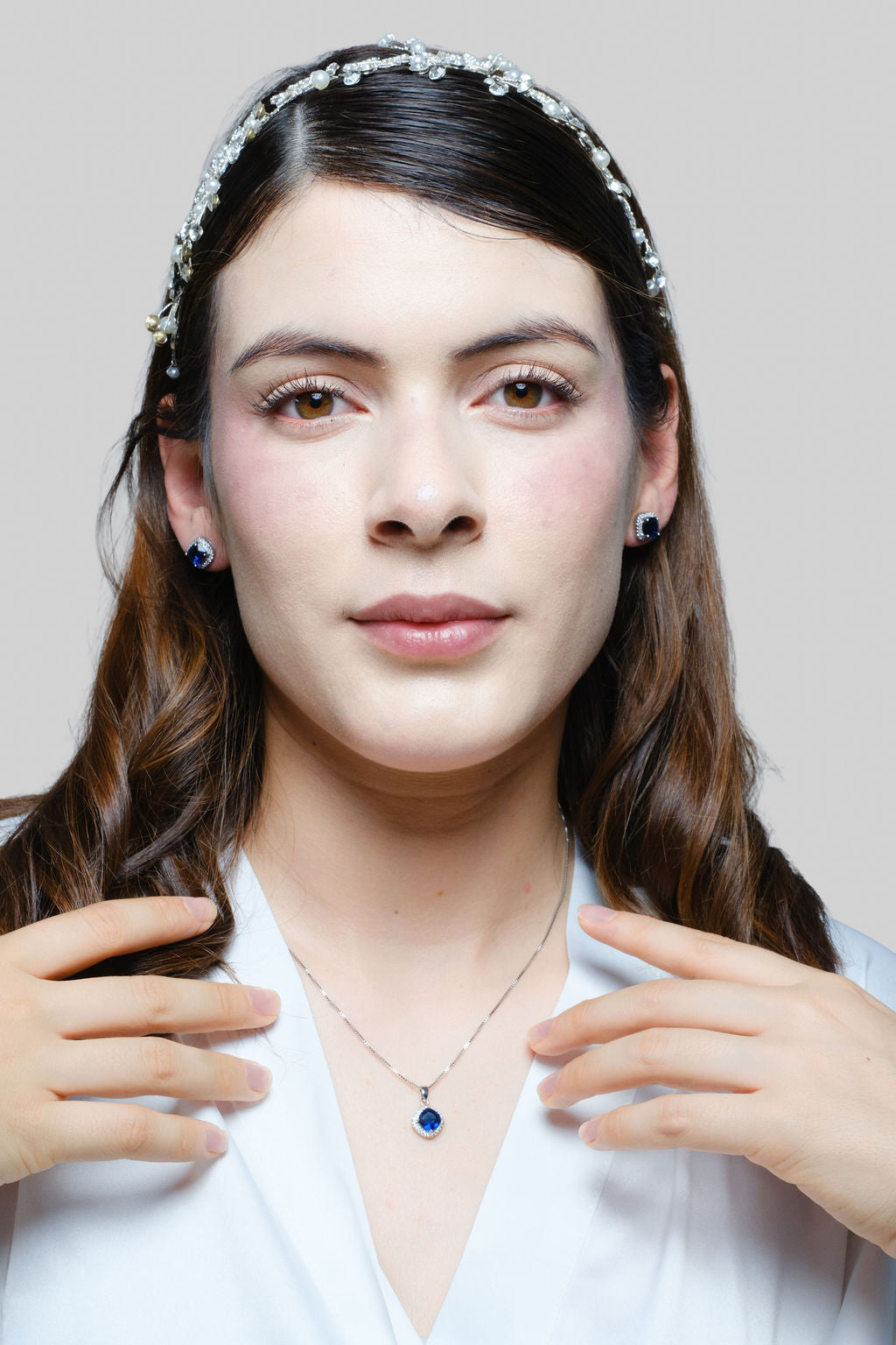 ¡Realza tu estilo minimalista con este hermoso set de joyería! Están elaborados en circonia de lujo y rodio platinado, perfectos para una novia elegante. Pequeños pero con un gran impacto, ¡al lucirlos serás la novia más radiante!