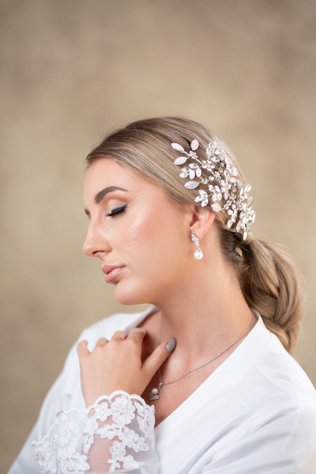 Delicado set de dos tocados con estilo floral e incrustaciones de cristal