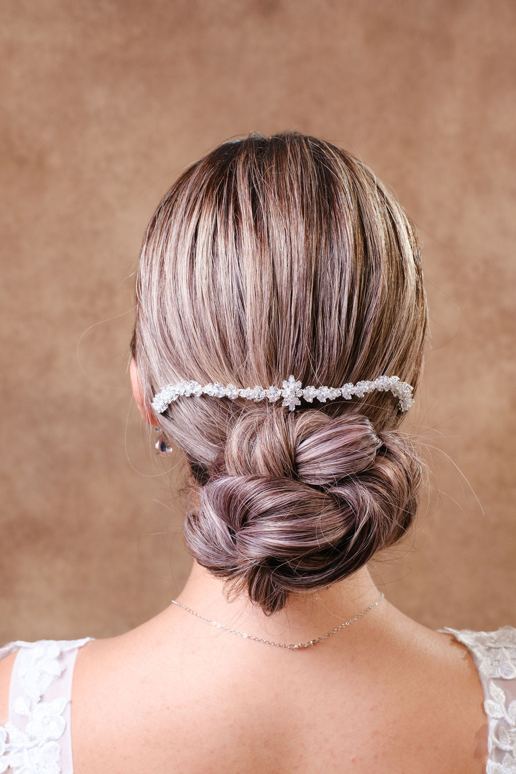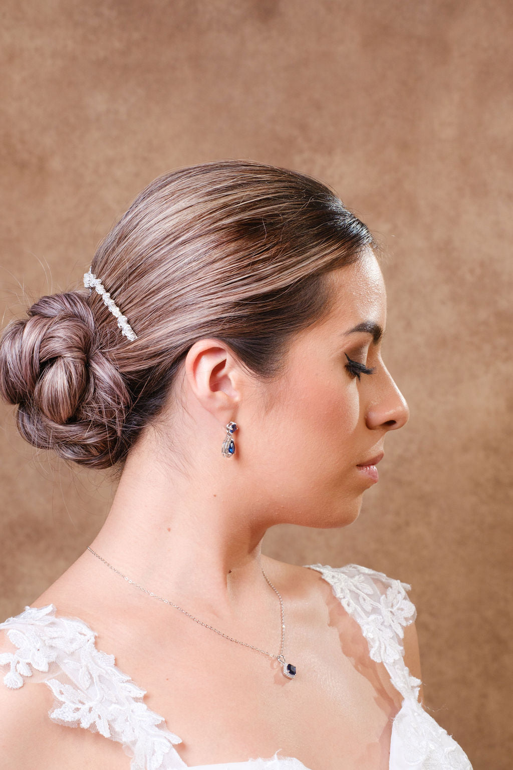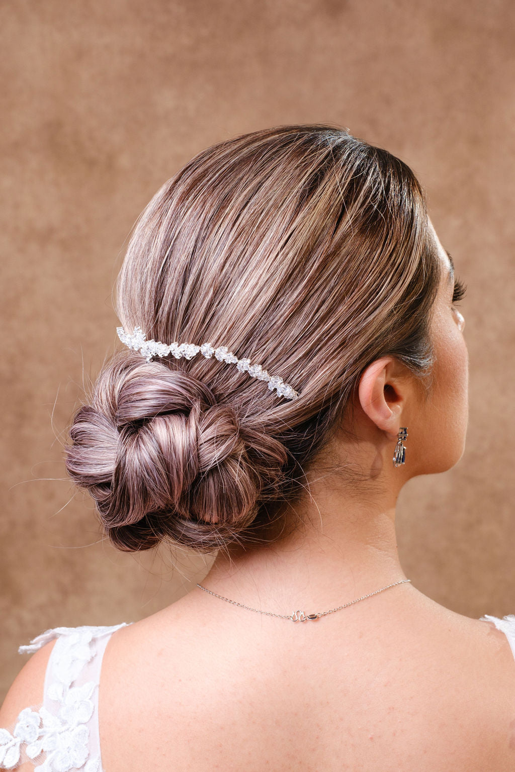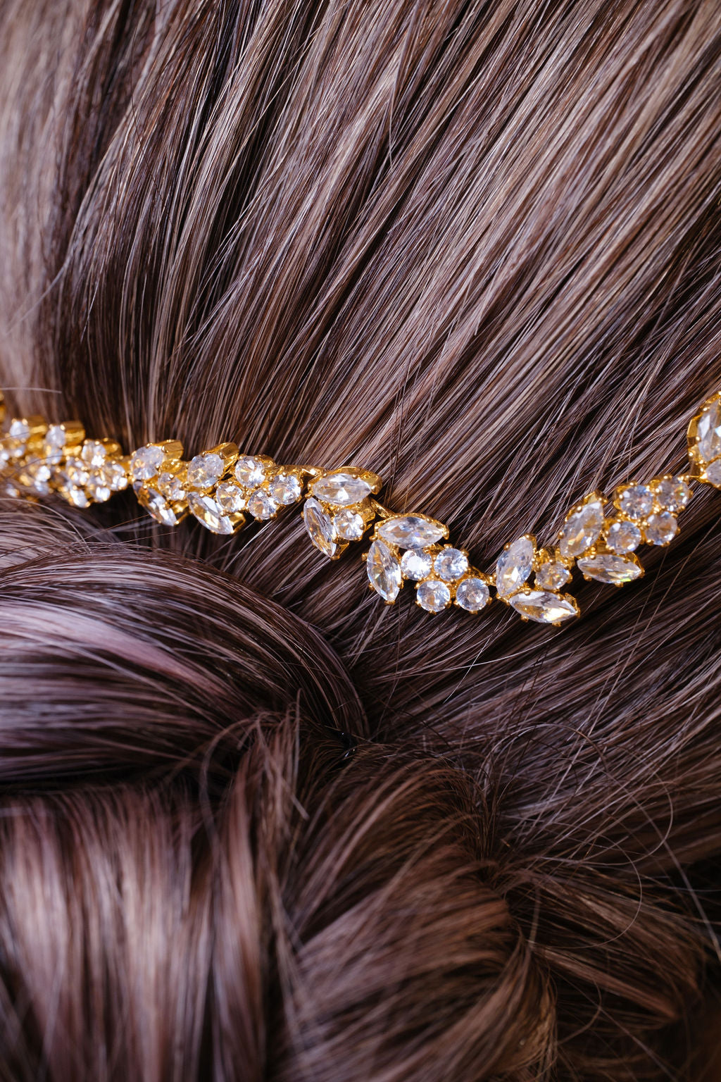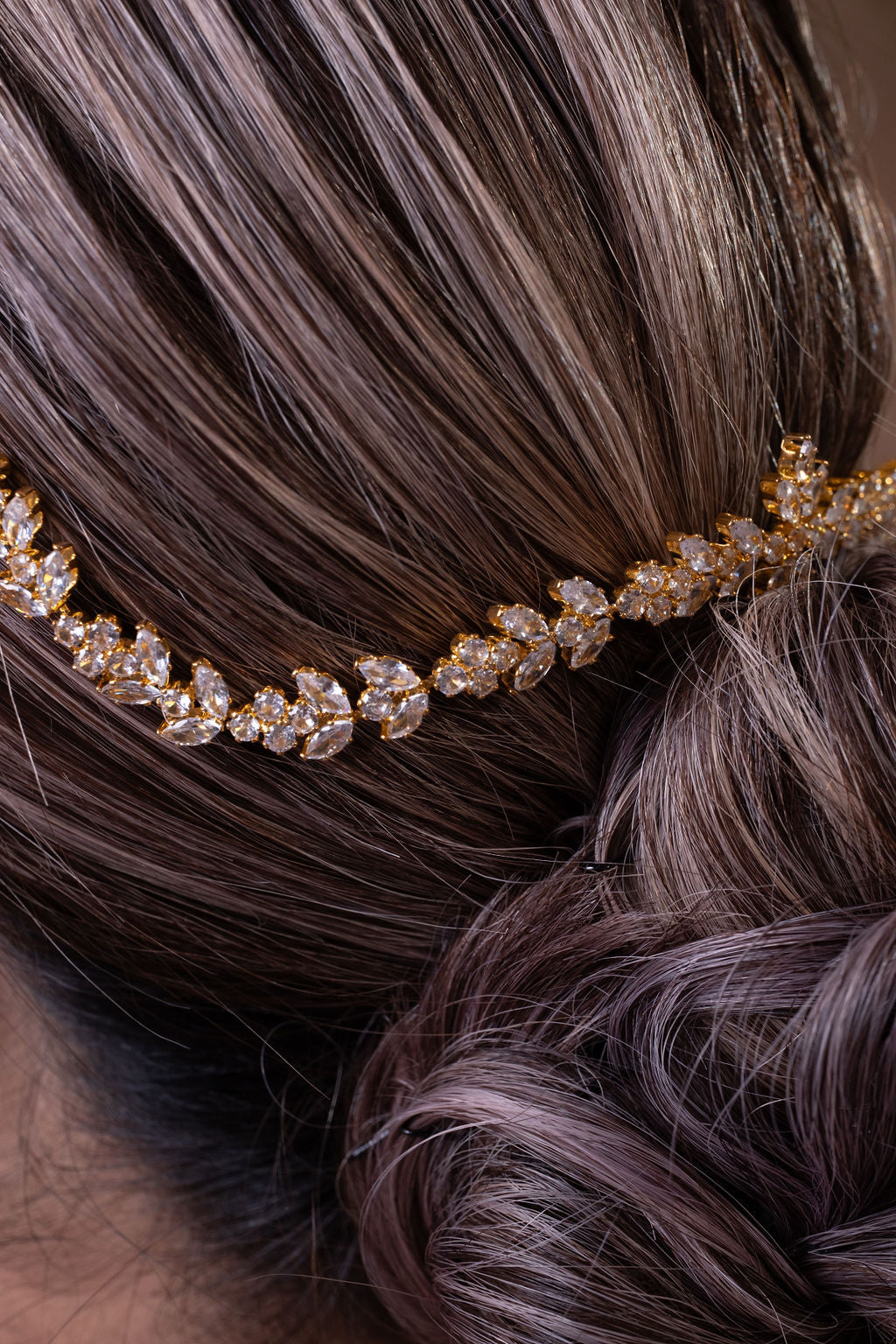 Elegante tocado minimalista con diseño de hojas, disponible en plata y dorado.