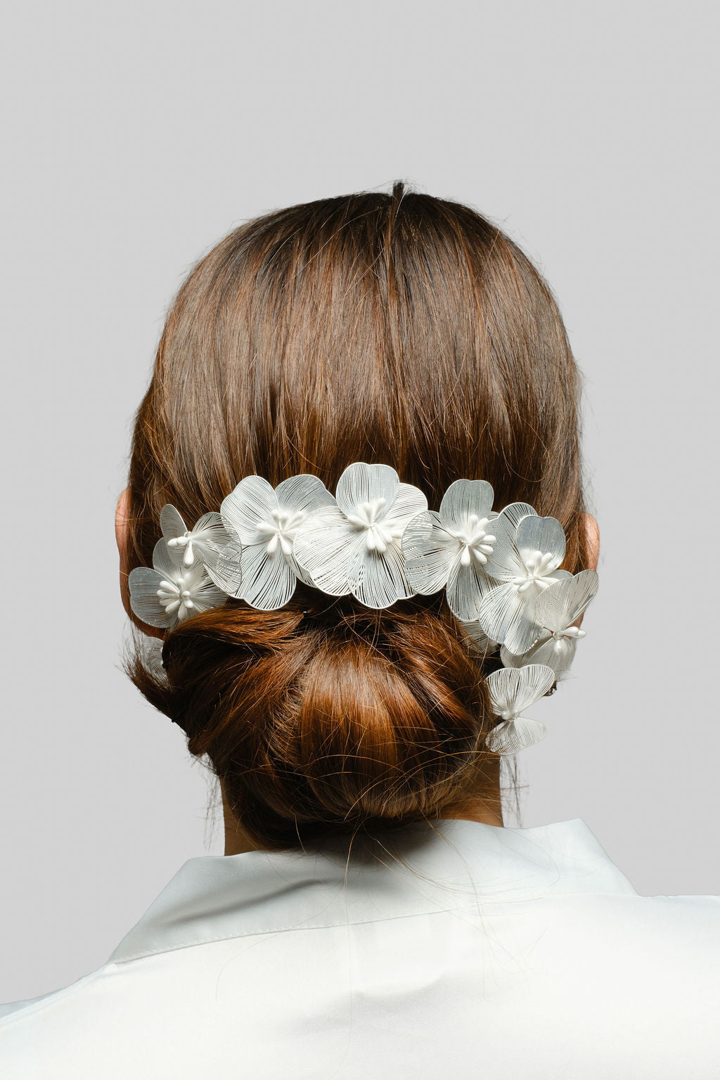 Hermoso tocado estilo floral con azahares ideal para llevarlo con peinado recogido o semi recogido.